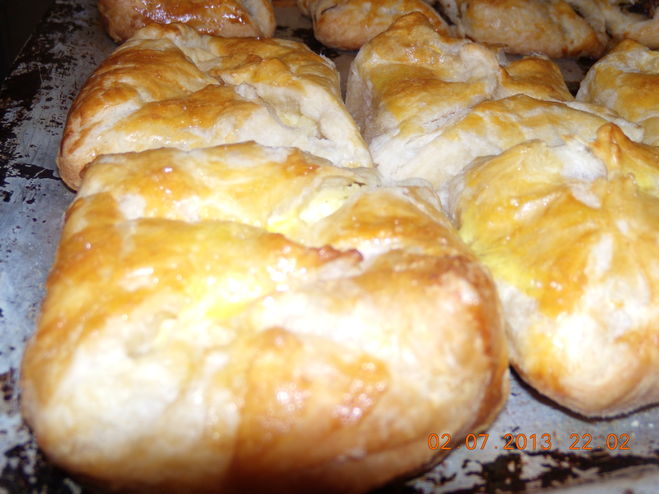 Я для пирожков с творожной начинкой готовлю скороспелое слоеное тесто.