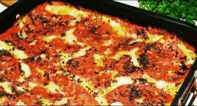 В принципе, можно отправлять в духовку на 1 час при температуре ~180°С. Но иногда меня "несёт"), и я могу сверху еще какой-нибудь слой уложить, например, из томатов (помидор).