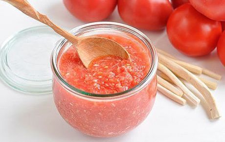 Для приготовления аджики с хреном нам понадобится по 10 штук перцев- болгарского сладкого и горького. Ещё берём 2,5 кг помидорчиков. И корень молодой хрена с чесноком, этих два продукта берём по 300 грамм. Поскольку аджика сырая, то все продукты должны быть свежими, зрелыми и качественными.Кроме того понадобится 1 большой стакан уксуса яблочного,полстакана сахара и соль.Соль мы будем брать по вкусу.