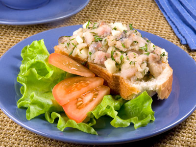 Подаем форшмак как закуску,на гренках.