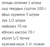 Кладем в миску сначала селедку, затем лук с яблоком,сыр и порубленный укроп.